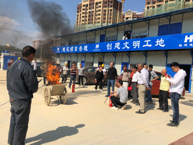 公司修海金副總經理向項目部管理人員宣讀消防安全知識手冊,深入淺出的向項目部管理人員及一線工人講解消防安全管理職責及施工現場消防安全管理知識。進一步要求在建項目樹立“安全重于泰山”的責任意識,完善安全管理制度,加大消防安全教育宣傳力度,提高施工現場的防范、應急自救能力,從而最大限度地減少火災危害。