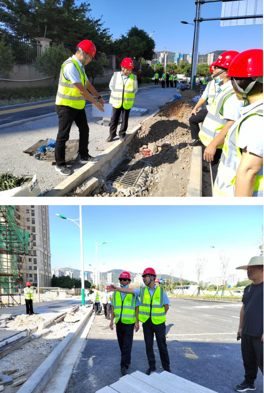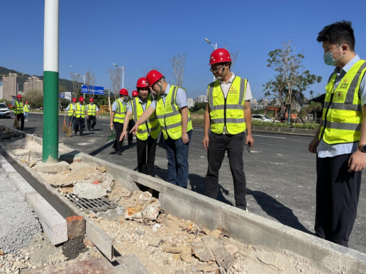 在檢查現場,檢查組一行認真查看道路施工安全隱患,并要求施工單位立即整改同時,市政集團黨支部書記、董事長徐旺興還強調,一要嚴把質量關,強化質量監督,抓質量的同時還要重安全,堅持“標準化、規范化、程序化”作業,施工過程嚴格按照操作規程施工,嚴禁違章施工,確保安全生產;二要排除安全隱患,對檢查中發現的安全問題要及時與項目負責人對接溝通,并正式通車前逐項整改,不留死角;三要強化全局意識,完善工作機制,施工和監理單位要緊密協調配合,提高工作效率,嚴控時間節點,全力以赴打好項目攻堅戰,確保如期通車,為廣大群眾提供“優質、安全、舒適”的通行環境。